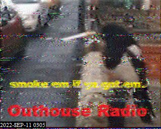 03:05 UTC - SSTV Station ID: Outhouse Radio;