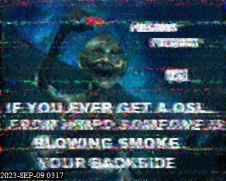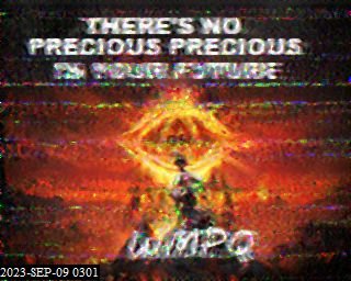 "Where the Wild Waters Flow" - Alex Rudi Pell, 'Man of Sorrows' - Bruce Dickinson, confusing ~ 1 minute of music / noise (if an ID didn't hear anything), 'Dancing with an Angel' - U.D.O., ., 'The Bard's Song - In the Forest' - Blind Guardian, SSTV, 'A Tale That Wasn't Right' - Halloween, bit of group singing, SSTV, 'When All is Lost' - Symphony X, ID ?-?-?-?, SSTV, 'The Unforgiven' - Metallica, "WMPQ", SSTV, 'Lake of Tears' - Gamma Ray, ID, SSTV, This is (??). WMPQ." 0319 off.