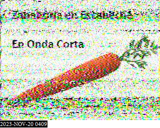 0400 UTC: SSTV transmission noise cutting through the fading nicely. Followed by the same alternating male/female voices giving the ID, just as I heard back around 0322 UTC.