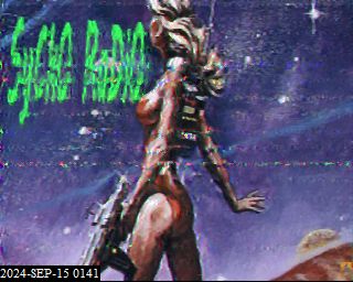 0112 Hard rock, 0113 "Sycho Radio. 6935.", unfamiliar funk, SSTV, 2 ID jingles, into 'Sycko Radio' song … 0138 'Forgotten Years' - Liquify, SSTV (poor decode here) … 0214 suddenly off mid song, 0215 'Twenty First Century Boy' - Sigue Sigue Sputnik.