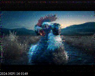 0059 UTC: SSTV transmission, then OM on the mic. Sounded like he "clucked," so this could be Thunder Chicken Radio.
