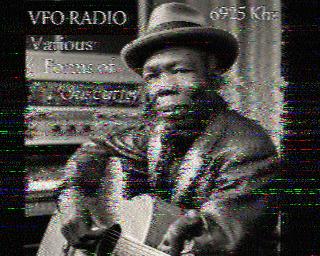 0034 UTC: SSTV transmission; came out blurry on my app, but it looks like an image of B.B. King with a guitar.