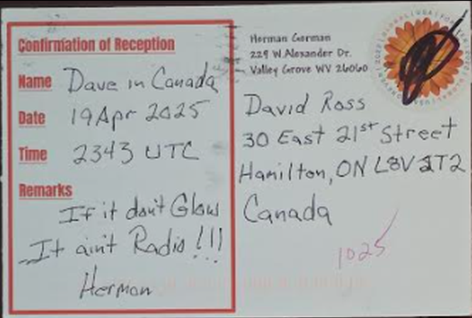Dave in Hamilton, ON Please eQSL to drossm@sympatico.ca