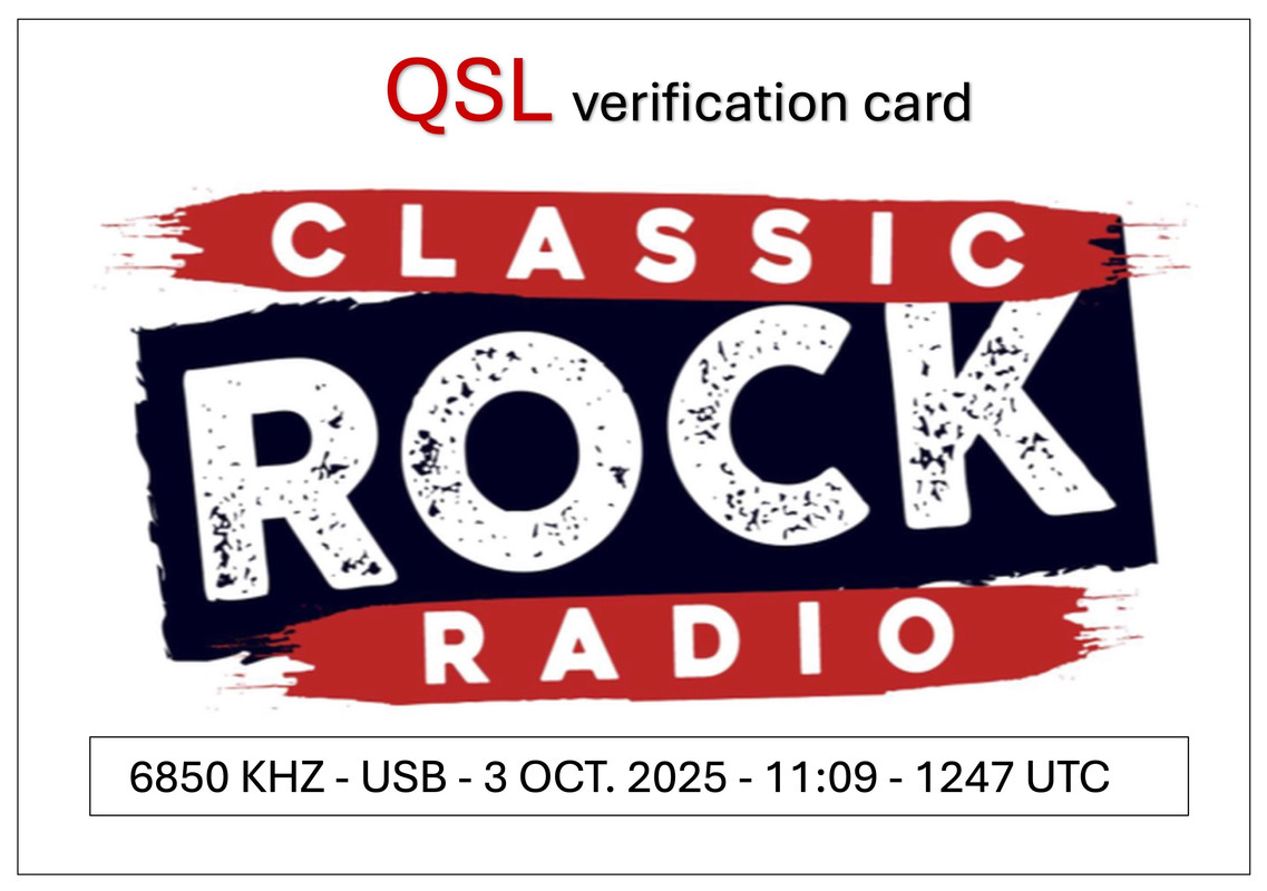Classic Rock Radio eQSL 6850 USB 1110 UTC 3 OCT 2025