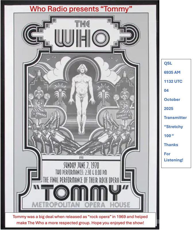 The Rock Opera Tommy eQSL 6935 AM 1132 UTC 4 OCT 2025