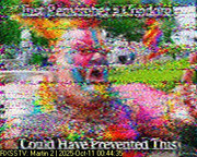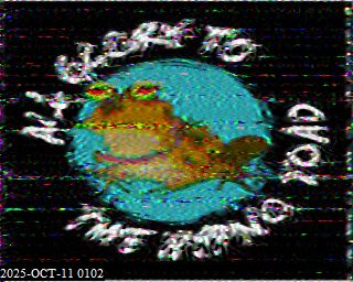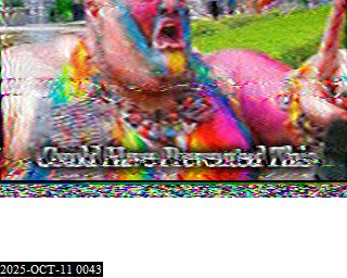 0043 UTC: SSTV transmission. There's wording on the image, but my decode is too fuzzy to decipher it.
