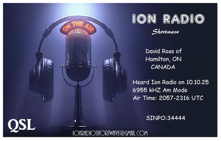 Ion Radio eQSL 6955 AM 2057 UTC 10 OCT 2025