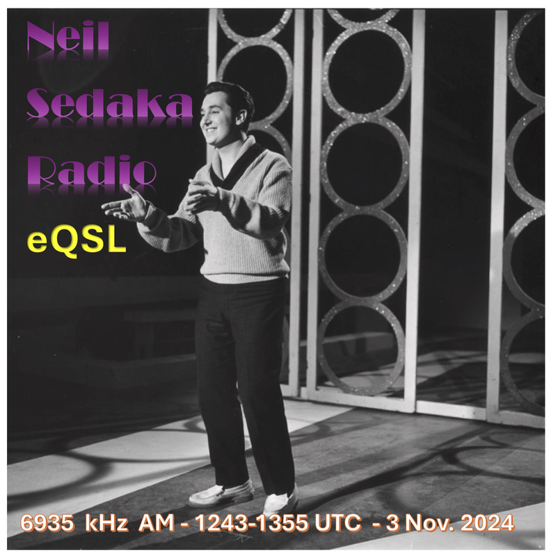 Neil Sedaka Radio eQSL 6935 AM 1243 UTC 3 NOV 2025