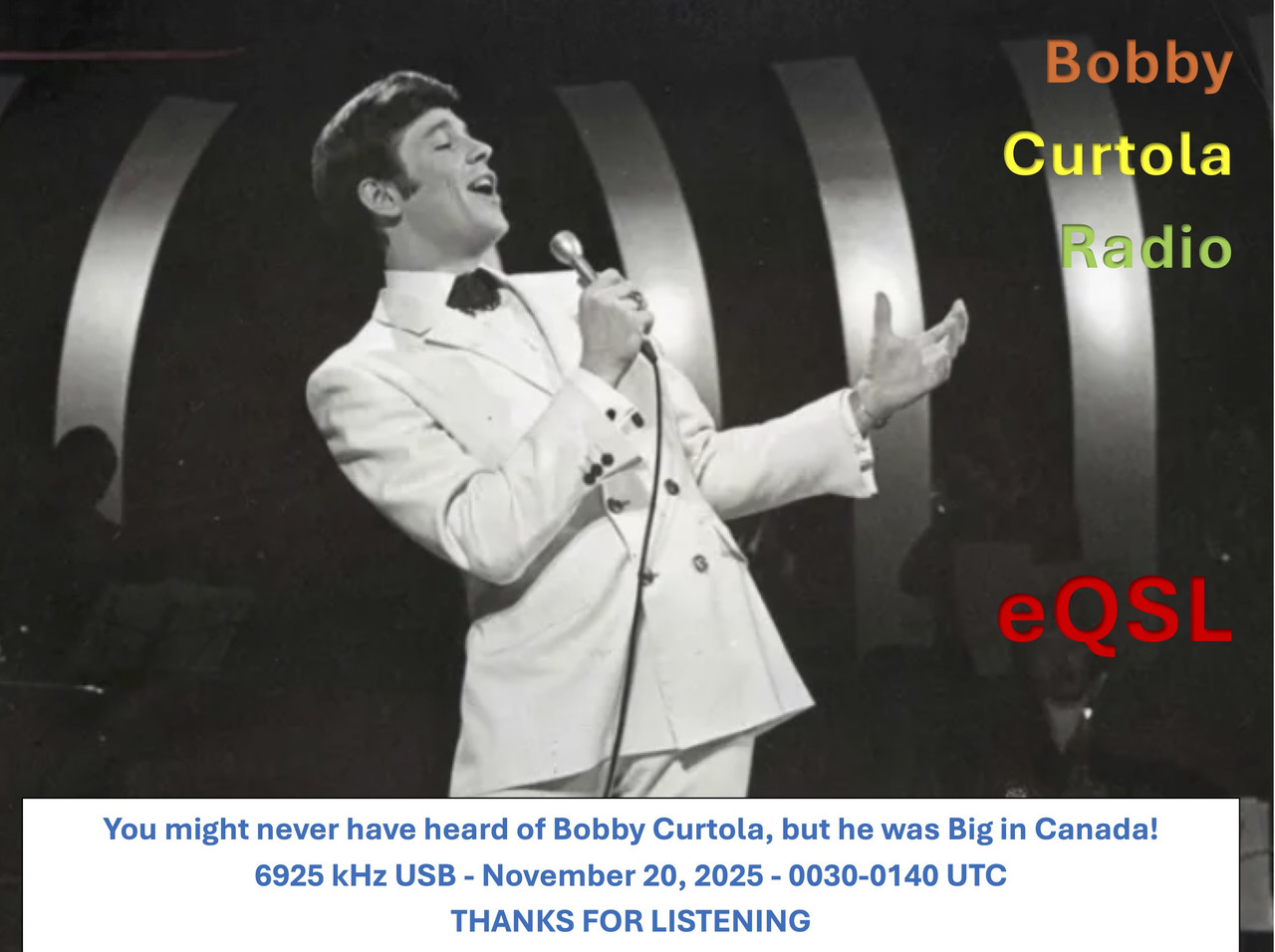 Re: Bobby Curtola Radio eQSL 6925 USB 0030 UTC 19 NOV 2025