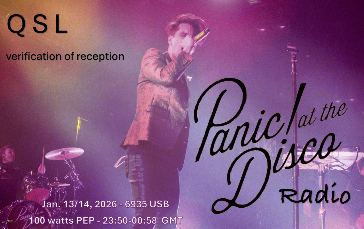 Re: Panic! At the Disco Radio eQSL 6935 USB 2351 UTC 14 JAN 2026