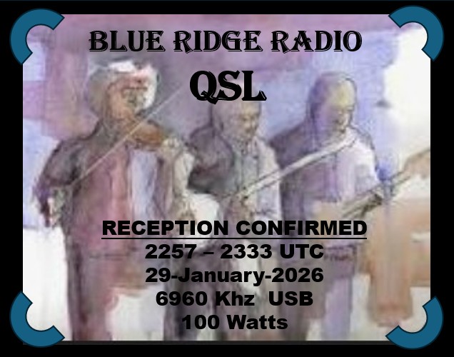 Blue Ridge Radio eQSL 6960 USB 2257 UTC 30 JAN 2026