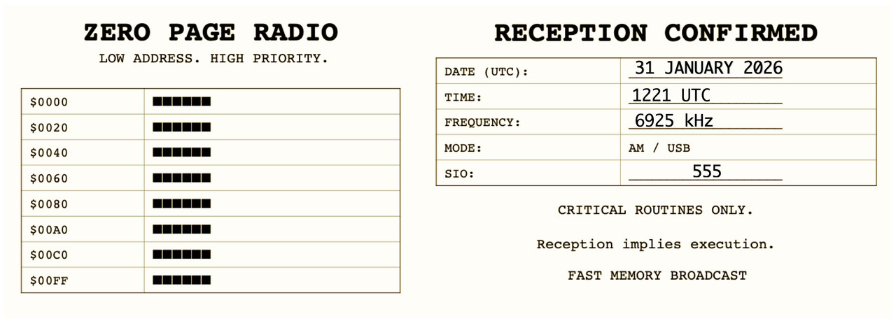 Zero Page Radio eQSL 6925 USB 1221 UTC 31 JAN 2026
