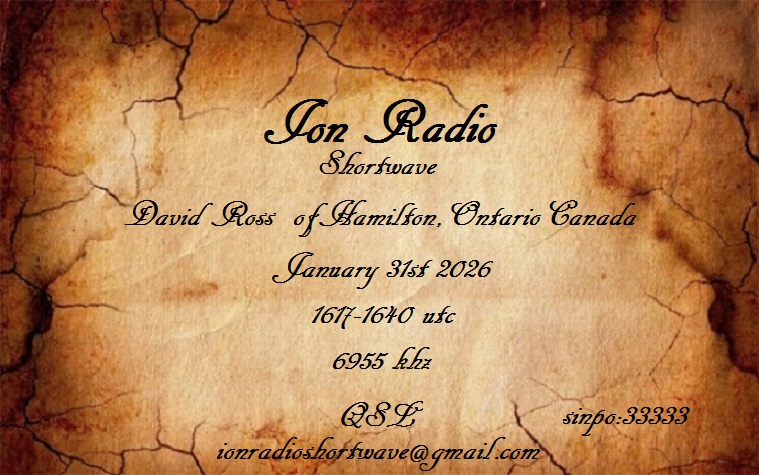 Author Topic: Ion Radio eQSL 6955 AM 1549 UTC 31 JAN 2026  (Read 50 times)