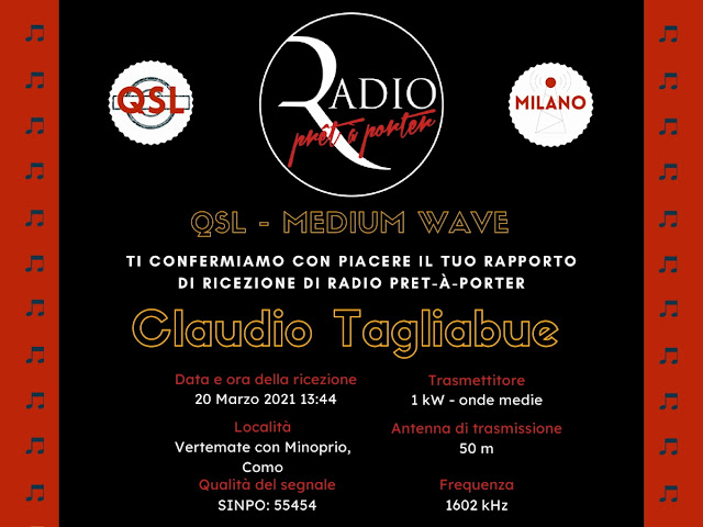 http://it2021swl.blogspot.com/ - email: claudio.tagliabue56@gmail.com - eQSL are highly appreciated thanks!