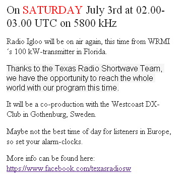 Topic: RADIO IGLOO/SWEDEN ON AIR July 3rd 2021 (Read 1073 times)