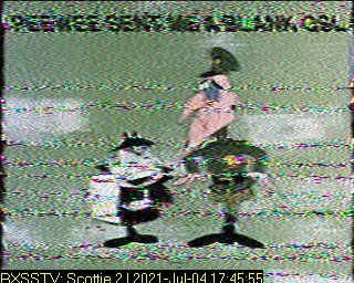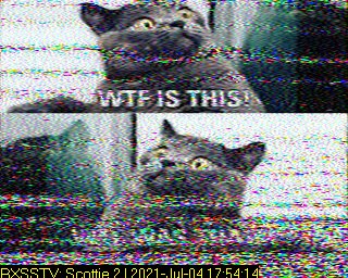 2305 S5, but little noise at the moment.  Man singing, sort of CW, audio's a little muddled, so Shazam couldn't ID.  Then Scottie 2 SSTV