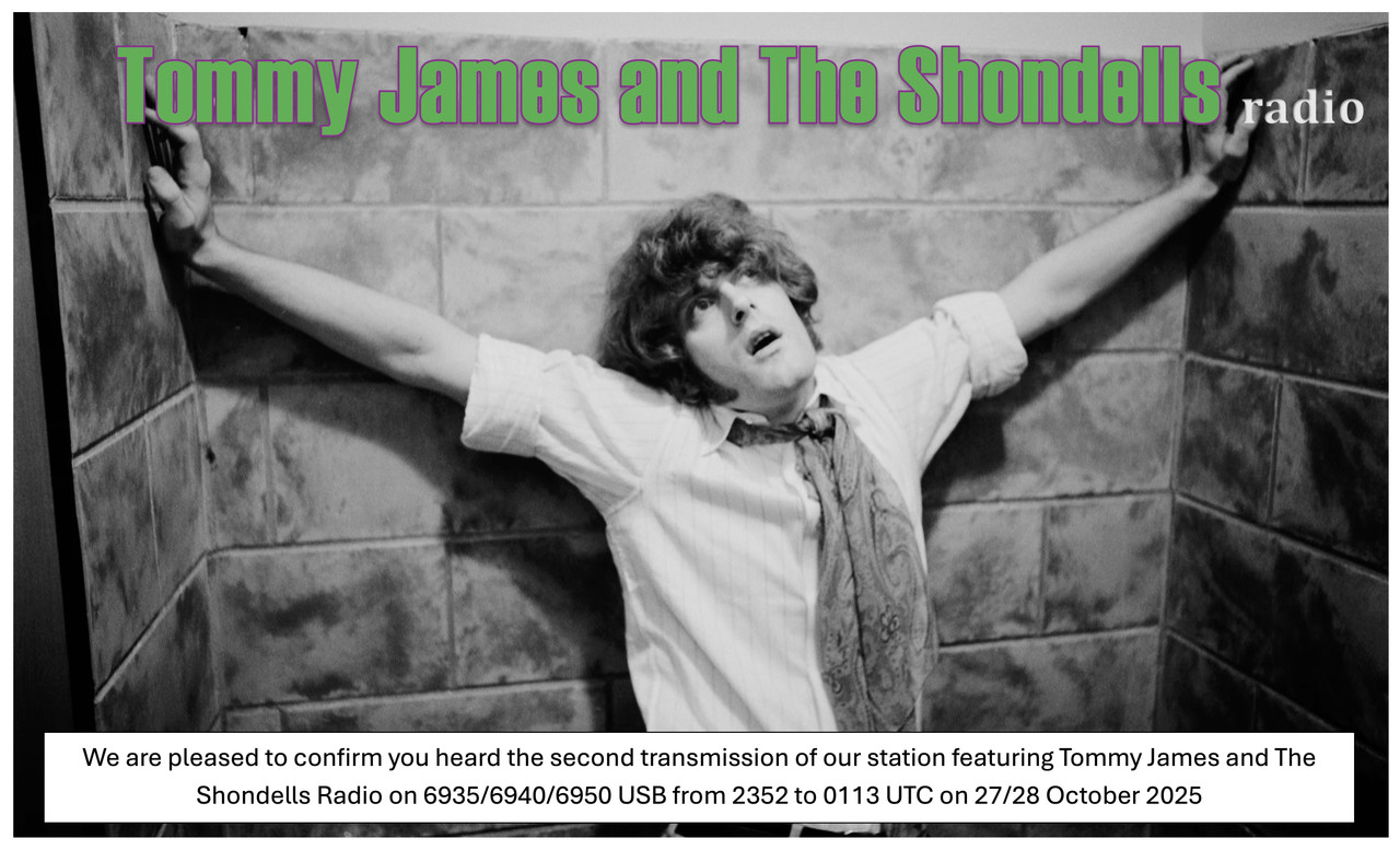 Author Topic: Tommy James & The Shondells Radio eQSL 6950 was 6940 USB 2352 UTC 27 OCT 2025  (Read 600 times)